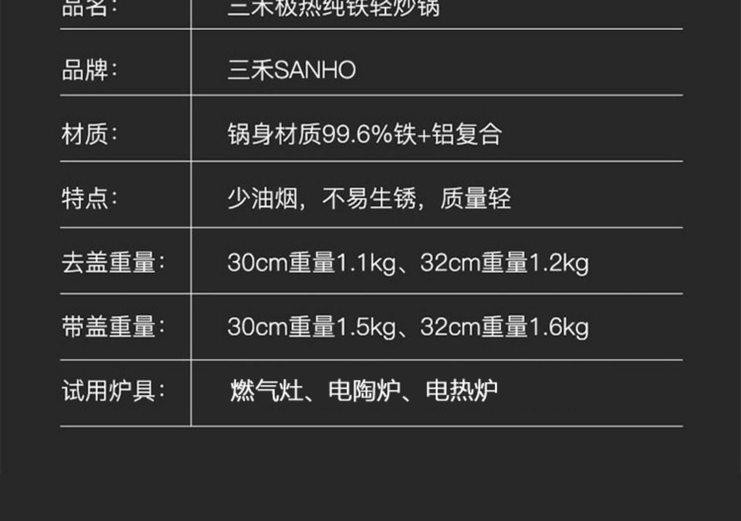 三禾纯铁炒锅 CTS3000-1 (30cm)