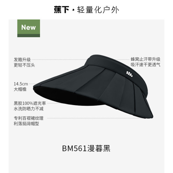 蕉下百褶贝壳黑胶防晒帽防紫外线