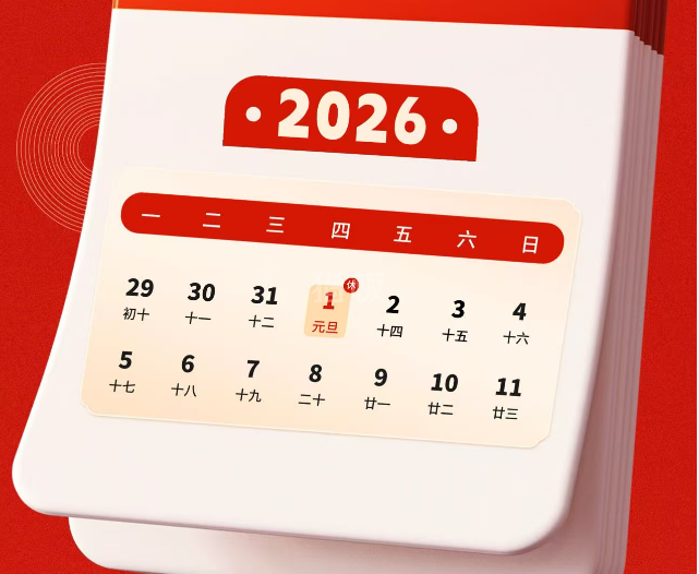 2026年1月1日放假,共计1天,1月2日正常出货